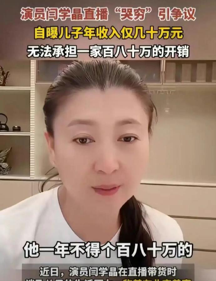 事件的导火索,是2025年底闫学晶的一场直播。镜头前,她向粉丝“说心里话”:她的儿子年入二三十万,儿媳年薪不足十万,小两口年入四十万在北京“活不下去”,自己得靠退休金和直播带货,每年贴补儿子一家六七十万。